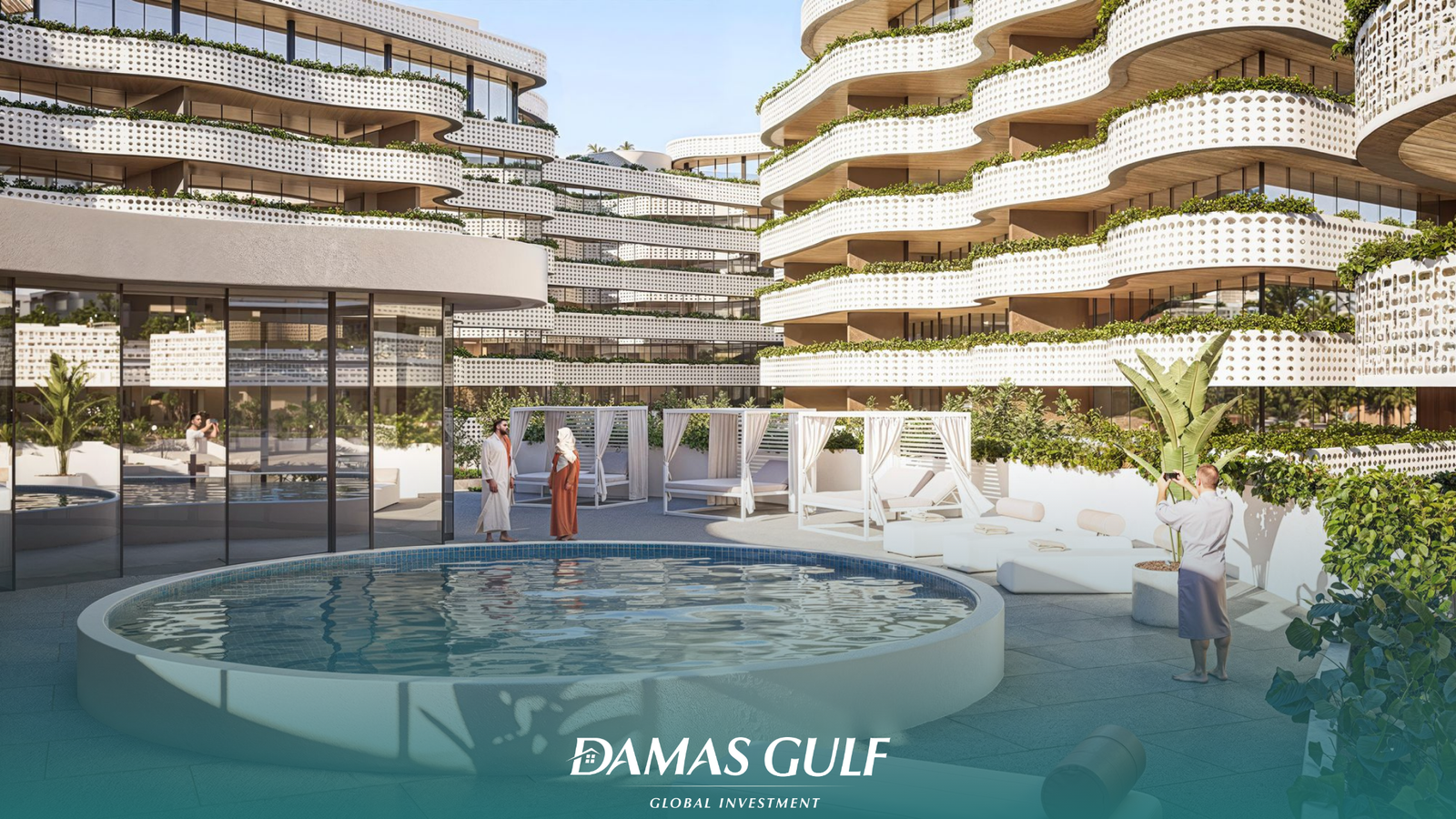 The project comprises six iconic towers connected by green streets and spacious walkways, designed with a modern and luxurious architectural style that emphasizes sustainability.